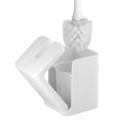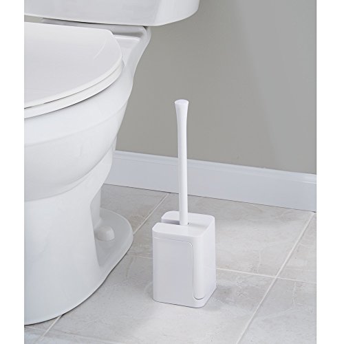 InterDesign Hideaway Compact Toilet Bowl Brush and Holder for Bathroom Storage - White