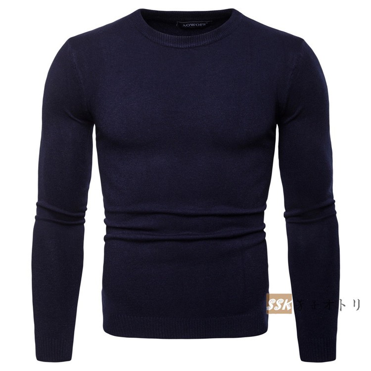 セーター メンズ ニット ニットセーター 無地ニット クルーネック インナー トップス 秋冬 2018 新作 カットソー