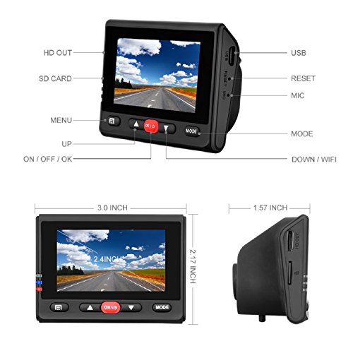 RoadRover Car dvr,Dash Cam, Dashboard Camera Recorder with Sony Exmor Sensor, 2.45”IPS LCD, 1080P FHD, 170 Wide-Angle Lens, Built-In WiFi, G-Sensor, WDR, Loop Recording, Auto Night Mode,Car Charger