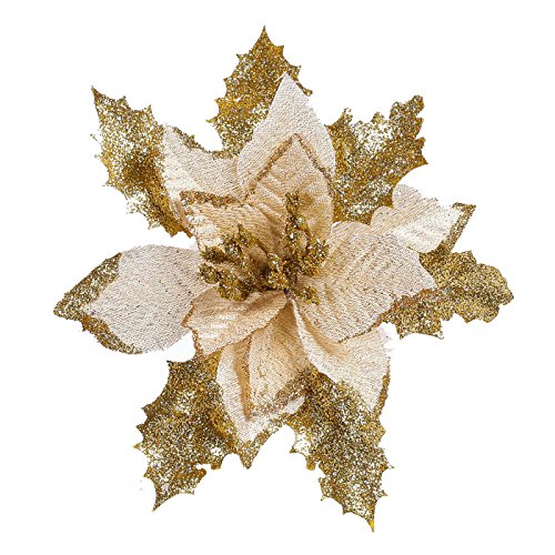 -. Title : Neomark 6 Pieces 17 cm Artificial Poinsettia Flower For Christmas Tree Wreath House Decoration Blue Red Golden With Shining Edge