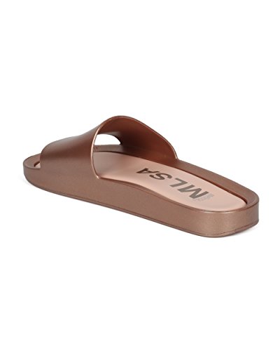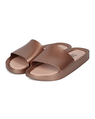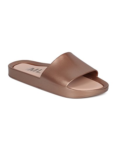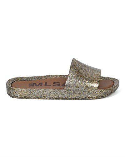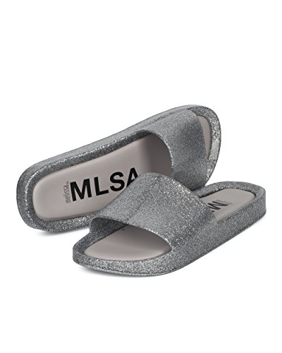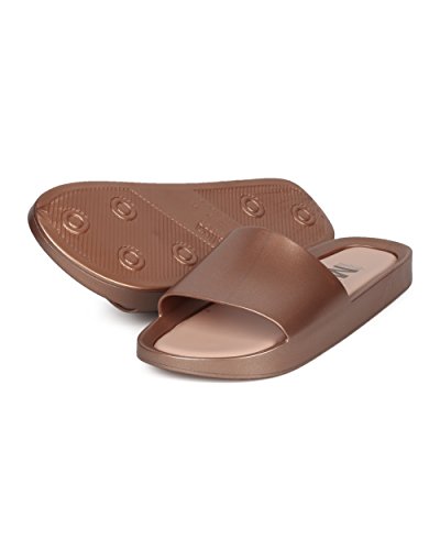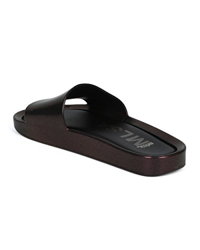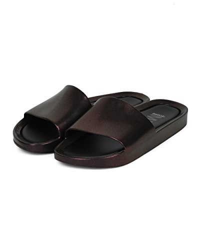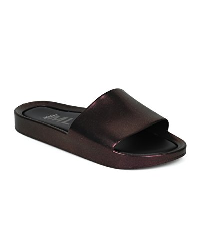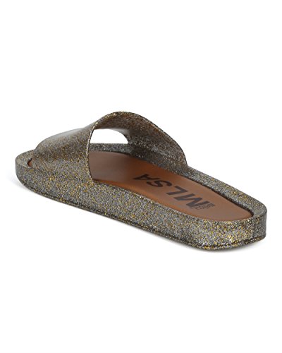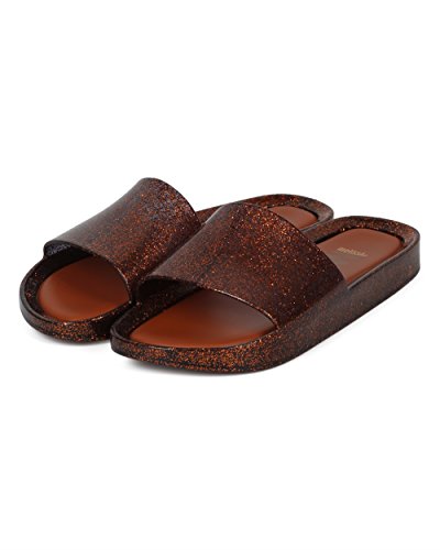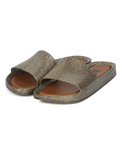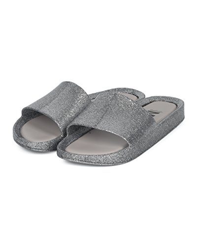 | Women PVC Glitter Slip On Sandal - Cushioned Open Toe Beach Slide - Casual Summer Pool Lounge W... |