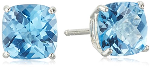 Stud earrings feature 6mm Swiss Blue Topaz center stones.