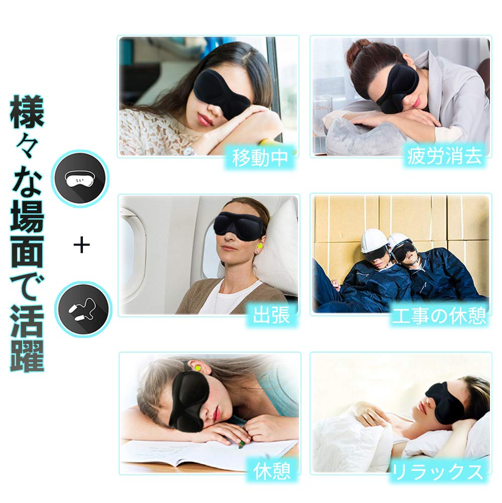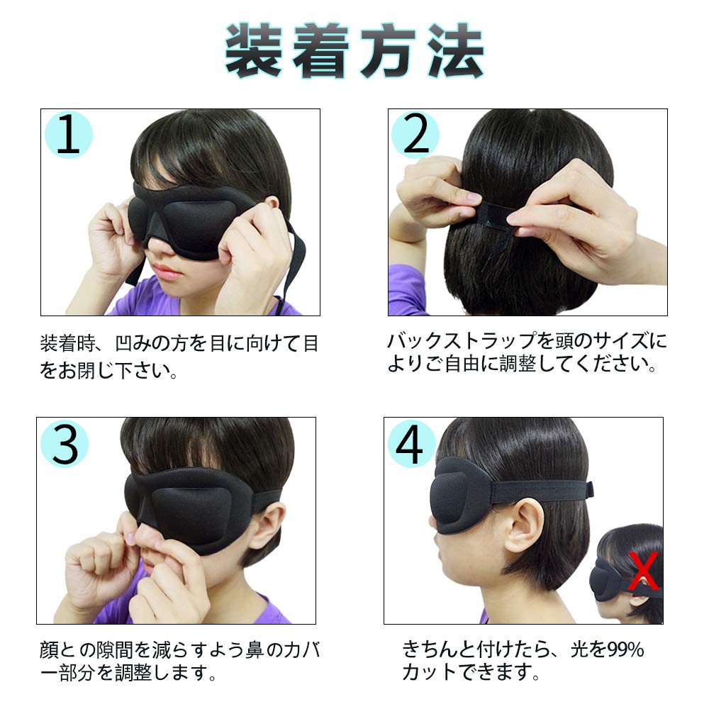 ★【親切なデザイン&全世代向け】肌触りの良いストレッチパイル素材を採用し、髪の毛や枕をキャッチしないスムーズ感を実現。目元の部分が深い凹みになり、女性のアイメークを崩さない。長さの調整が可能なストラップと面ファスナーにより、大人でも、子供でも使用できます。