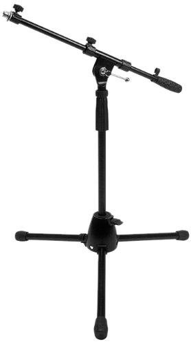 -. Feature : Great for Miking Drums and Guitars / This short microphone stand fits into small areas, but its telescoping boom arm makes it easy to create the perfect for drum and guitar amp mic placement. / The tripod legs fold, minimizing your required storage space.
