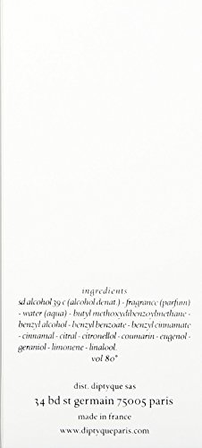 Studio : Diptyque Publisher : Diptyque Binding : Misc. Product Description Evokes all the transparency of L'Eau, the first scented water from Diptyque, created by Desmond Knox-Leet in 1968. Cinnamon, geranium, sandalwood, rose, and cloves combine to add a spicy freshness that stirs the senses. 0