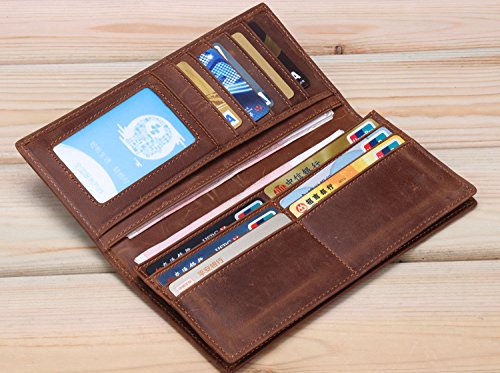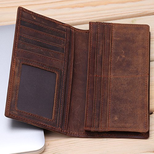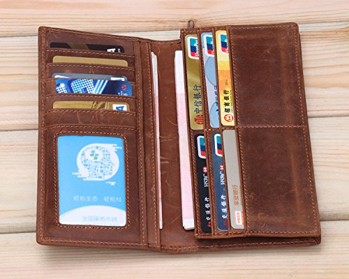 -. Title : Iblue Vintage Look Genuine Leather Long Bifold Wallet Card Case Brown for Men 830