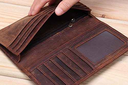 -. Feature : Crafted With Top Cow Leather And All Hand Stitching Without Use Of Adhesive For Durability. / Product Dimensions: 7.2 x 3.6 x 0.78 Inches,Horizontal Long Style,Suits To Most People Such As Businessmen,Office Workers, Officer, Teacher, Students, Etc. / Full-Length Bill/Receipt/Ticket Compartments,11 Credit Card Slots,One ID Window And One Zipper Coin Pocket. / Vintage And Classic Design. It Is a Simple And Traditional Bi-Fold Design Wallet,Perfect For Night Out /Work Place / Travel / Business. / Stays Slim Due To It Keeps The Cash Flat And Parallel Lay Of The Card Slots.