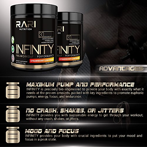 Why choose RARI Nutrition Infinity Pre-workout? Fuel your body, fuel your workouts. RARI Nutrition Infinity is precisely bio-engineered to provide your body with exactly what it needs at the proven amounts, packed with key ingredients to promote euphoric pumps, energy, focus, and endurance, without the added fillers.