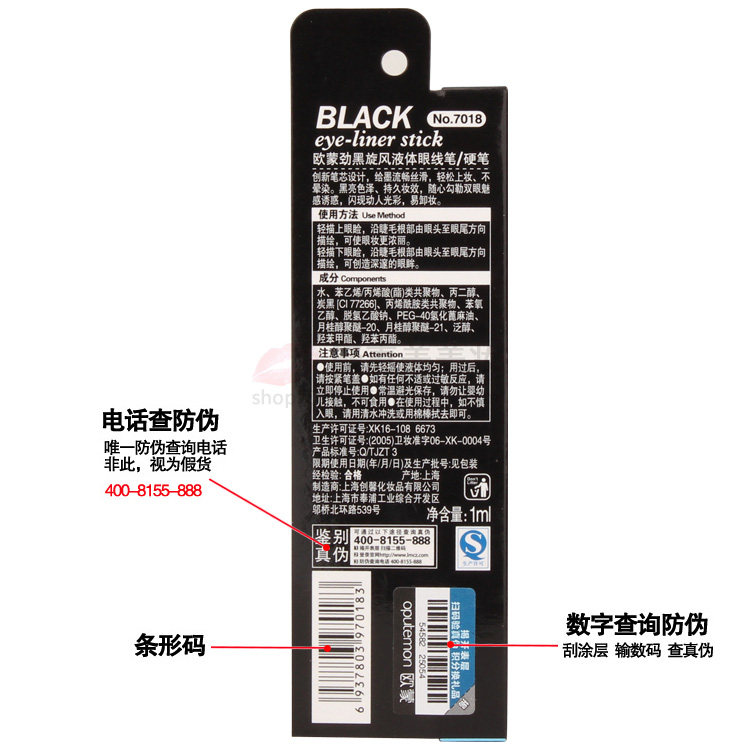 | 名称 | 欧蒙劲黑旋风液体眼线笔/硬笔/硬头(NO.7018) | |||