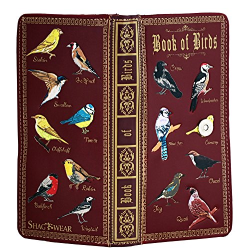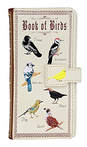 Binding : Apparel Product Description This uniquely designed Book of Birds wallet will make a statement where ever you go. Holds your cash and cards securely. Features 11 credit card slots, 1 ID card slot, 1 large money pocket, an exterior magnetic snap closure and a large zippered back pocket with divider. Made of faux leather and measures 4 x 7.5 x 1 in. 0