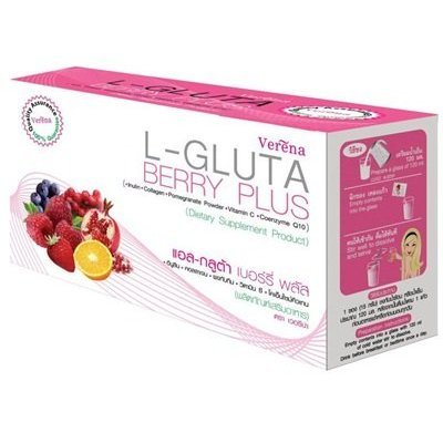 -. Feature : Verana L-Gluta Berry Plus L-Glutathione Collagen Coenzyme Q10 / Drinking fresh juice extract (verena Berry Plus) Whitening in 24 hours a day, one bag each day. / Keeps the skin smooth and clear skin as well as the children eat verena Berry Plus every day. / size : 10 sachets. / 1 box.