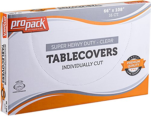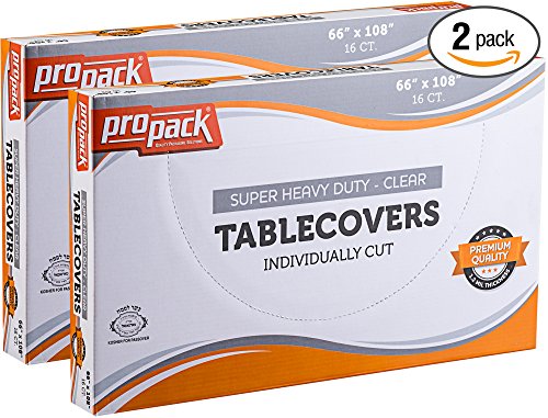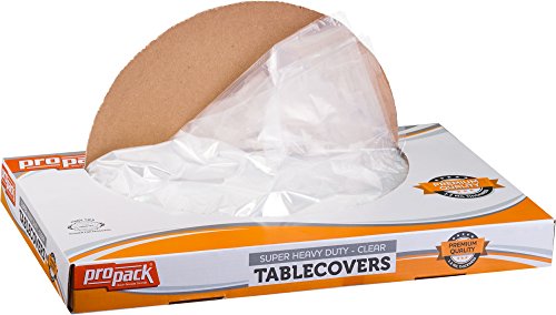Product Description Propack Disposable Heavy Weight Clear Plastic Tablecovers Individually Cut Precut Tablecloth In A Box Super Heavy Duty Pemium Quality 1.2 MIL Thickness 0