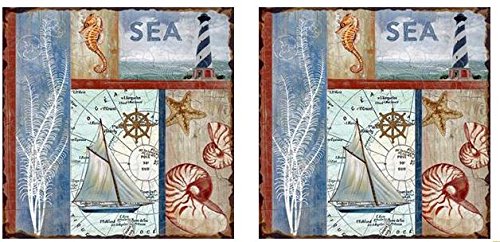 Devali (2) 10" Heavy Duty Metal Sea Shore Collage Pictures | Nautical Home Office Wall Decor | Black Friday Christmas Gift