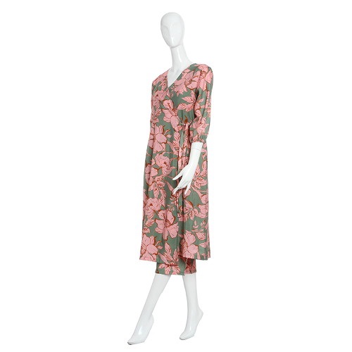 나일론과 레이온이 혼방되어 안 입은듯한 가벼운 소재감이 특징인 NR소재를 사용한 앞여밈 스타일의 가운입니다.