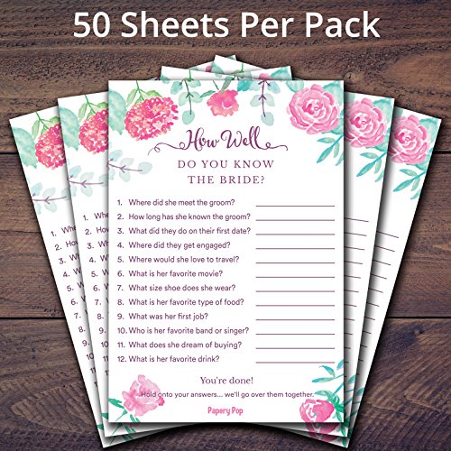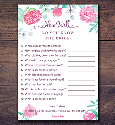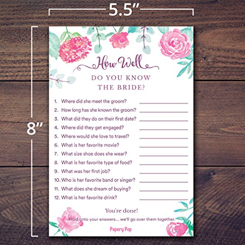 How Well Do You Know The Bride (50 Sheets) - Bridal Shower Games - Wedding Shower Games - Wedding Games - Bachelorette Party Games - Watercolor
