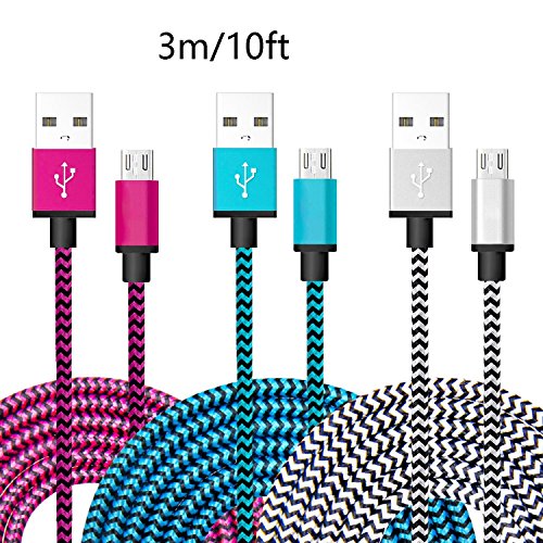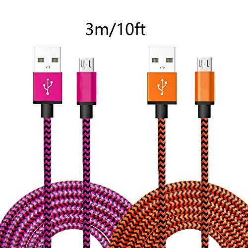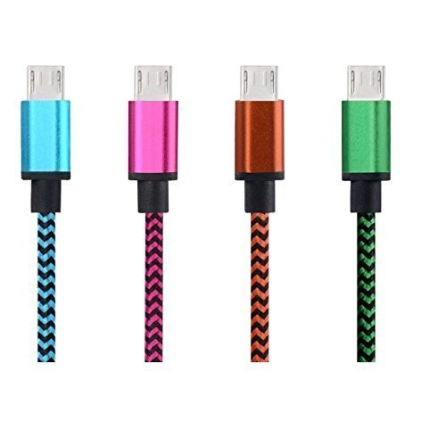 FFGF Micro USB Cables USB 2.0 and Charge Cables (6 Foot 4 Pack,BLUE GREEN ROSE ORANGE)