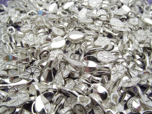 50 CleverDelights Waterdrop Glue On Bails - 17x7mm - Shiny Silver Color - Small Glue-On Bails - Scrabble Glass Pendants Paddle Drop Bails - 11/16 x 1/4 inch 17mm x 7mm