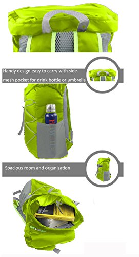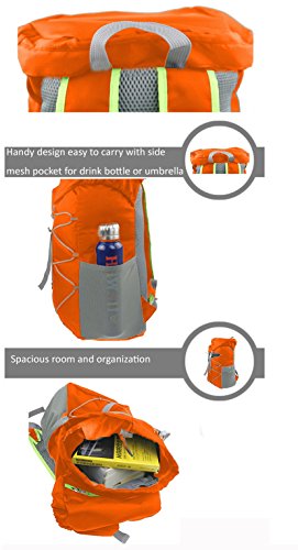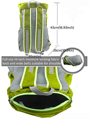 -. Feature : Foldable, Packable, Durable, Waterproof, Tear-resistant Bright Colored Super Polester Fabric. This fabric is high density ripstop much better than ordinary diamond or honeycomb Nylon fabric. / Full size Hi-tech Air-mesh Padded Back Panel Back and Belts keep your back cool and ventile. The backpack is with two sides stretch mesh bags for water bottles or umbrellas etc, 1 inner zippered pockets to keep your valued belongings and 1 inside layer compartment for laptop also to make a main compartment inside the bag, all the designs is to keep your belongings organized. Outside front soft latching loop for your jackets and other items with a belt. / Product Dimensions:Unfold Size: 43cm(16.93inch)*30cm(11.8inch)*26cm(10.24inch) Fold Size: 22cm(8.66in)*15cm(5.90in)*6cm(2.36in). Weight:0.66lbs. Amazing Size for Workout Occasions: Camping, Hiking, Yoga, Gym, Pilates, Swimming, Shopping, 3-5 Days Short-trip Travel. / With its spacious room and organization, it is spacious enough to keep shoes, clothing, water bottle, charger, cellphones etc. It's not a big hiking bag but as good as for a 3-5 days Short-trip travel. / Occasions: Gym, Swimming, Diving, Travel, Shopping, Camping, Casual, Daily Use, Short Trip Etc. A gift for your family or friends. Foldable, Packable, Daypack, Backpack, Duffel Bags, Tote Bags, Gear Bags, Sackpack, Gymsack.
