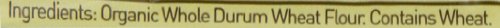 -. Feature : Certified Organic & Kosher ( Circle K symbol) / Imported from Italy / Dried at Low temperatures with superior quality / 100% Whole Grain-6 grams of fiber per serving / True pasta texture-not gritty or grainy