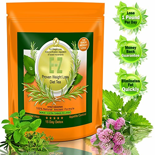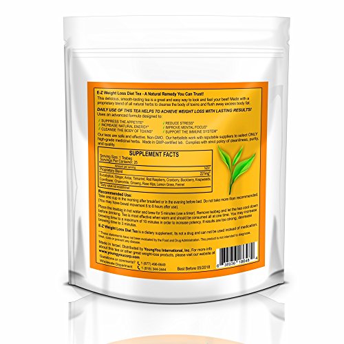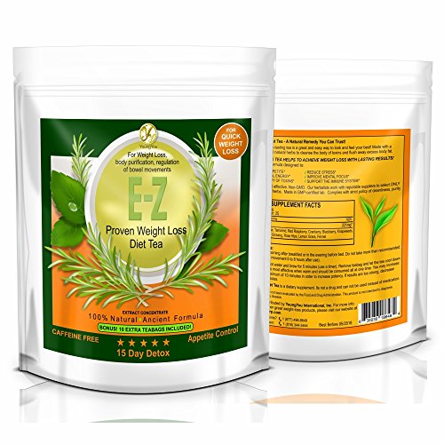 -. Binding : Health and Beauty -. Brand : YoungYou International -. EAN : 0638936186484 -. Feature : MAKE WEIGHT LOSS EASY- Cleanse and Energize. This Detox Tea helps to Control Cravings, Boost Energy and Enhance weight loss. / HELPS YOUR DIGESTION and Relieves Excessive Bloating. This Diet Tea is guaranteed to work! We are so confident that you will love our 15 Day Detox Diet Tea that we will refund every penny if you don't like it! You Can Return even the empty boxes. You Have Nothing to Lose. You will either, cleanse your whole Body, burn excess fat and feel great again or you will get a full refund. / DELICIOUS TASTING - Totally Herbal. Non GMO. Complies with strict policy of cleanliness, purity and quality / FULL OF POWERFUL ANTI-OXIDANTS AND VITAMINS - Helps to Reduce Stress, supports your immune system. / WORKS RIGHT FROM THE FIRST DAY YOU TAKE IT! - Safe and effective for both men and women. Suitable for long term use. Only highest quality Herbs and fruits. Preservative Free -. IsAdultProduct : 0 -. Label : YoungYou International -. LegalDisclaimer : For Extreme Weight Loss and Appetite Suppression. Use only as recommended -. Manufacturer : YoungYou International -. MPN : EZ15DAY -. PartNumber : EZ15DAY -. ProductGroup : Health and Beauty -. ProductTypeName : HEALTH_PERSONAL_CARE -. Publisher : YoungYou International -. Size : E-Z Detox Tea / 15 Days / 25 ct -. Studio : YoungYou International -. Title : E-Z Detox Diet Tea - 15 Day Body Detox. Weight Loss, Appetite Control, Energy, Cleanse and Detox tea. -. UPC : 638936186484