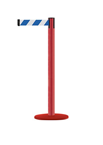 Tensabarrier MARINEPOST-21-MAX-NO-D1X-C Red Marine Post, 38" Height, 2" Wide, 13' Length, Chevron Blue/White Belt