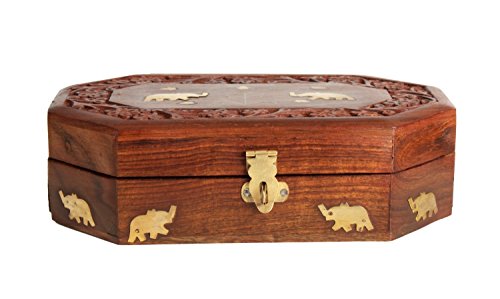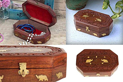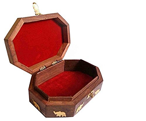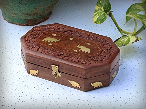 Valentine Day Special Present, Wooden Jewelry Box with Elephant Brass Inlay,jewelry storage Box