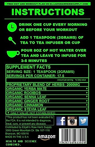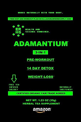 -. Binding : Health and Beauty -. Brand : ERHS -. Color : Black -. Department : weight loss -. EAN : 7426756933929 -. Feature : THE ULTIMATE 14 DAY DETOX HERBAL TEA - Made with 100% Certified Organic ingredients with no artificial colors, flavors, sweeteners, or other ingredients added. 100% pure raw herbs. / THE BEST PRE-WORKOUT HERBAL TEA EVER! - Made with anti-oxidant rich Rooibos plus Yerba Mate; to supply you with a moderate amount of non-jittery caffeine that does not interfier with your sleep cycles and to provide electrolytes. Ginger root is known for its anti-inflammatory effects which can aid in recovery. / ULTRA SLIMMING FORMULA - Scientifically designed to maximize your weight-loss. Stevia leaf contains chromium which helps you burn sugars more effectively. Cinnamon aids in the proper balance of sugars in the blood stream. Senna leaf helps remove toxic burden and is a key ingredient in weight-loss. / WORKS NATURALLY WITH YOUR BODY - 100% Certified Organic pure raw herbs are whole and complete. They will not leave you with side effects or imbalances and are readily absorbed. / MOTHER NATURE DELICIOUS! - With sweet flavors and aromas of ginger and cinnamon and the all natural sweetness of 0 calorie stevia leaf. This tea is sure to appease even the most delicate palate. -. IsAdultProduct : 0 -. Label : Elijah's Raw Herb Supply -. LegalDisclaimer : This product has not been evaluated by the FDA. It is not intended to diagnose, treat, cure, or prevent and disease. Pregnant women or breast feeding woman should not use this product. People sensitive to caffeine should not use this product. Always consult with your doctor or health physician before starting any new diet, supplement, or workout routine. -. Manufacturer : Elijah's Raw Herb Supply -. PackageQuantity : 1 -. ProductGroup : Health and Beauty -. ProductTypeName : HEALTH_PERSONAL_CARE -. Publisher : Elijah's Raw Herb Supply -. Studio : Elijah's Raw Herb Supply -. Title : ERHS ADAMANTIUM 3-IN-1 Weight Loss Herb Tea: Detoxifying, Cleansing, Ultra Slimming, Energizing, Anti-inflammatory, Anti-oxidant, Reduce Bloating, Appetite Suppressant, and Skinny tea.