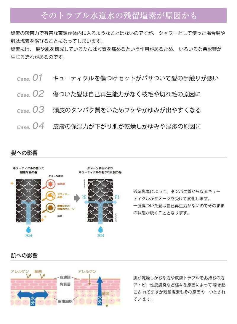 ・フィルターの寿命は、使用水量、水圧、水温、水質等の条件によって変化する場合があります。