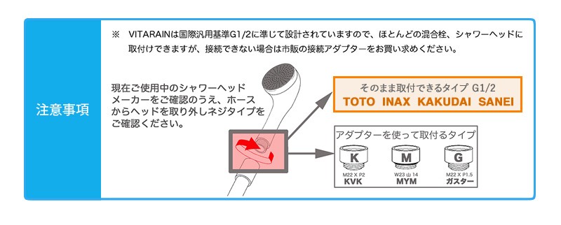 ビタレインは国際汎用基準G1/2に準じて設計されています。