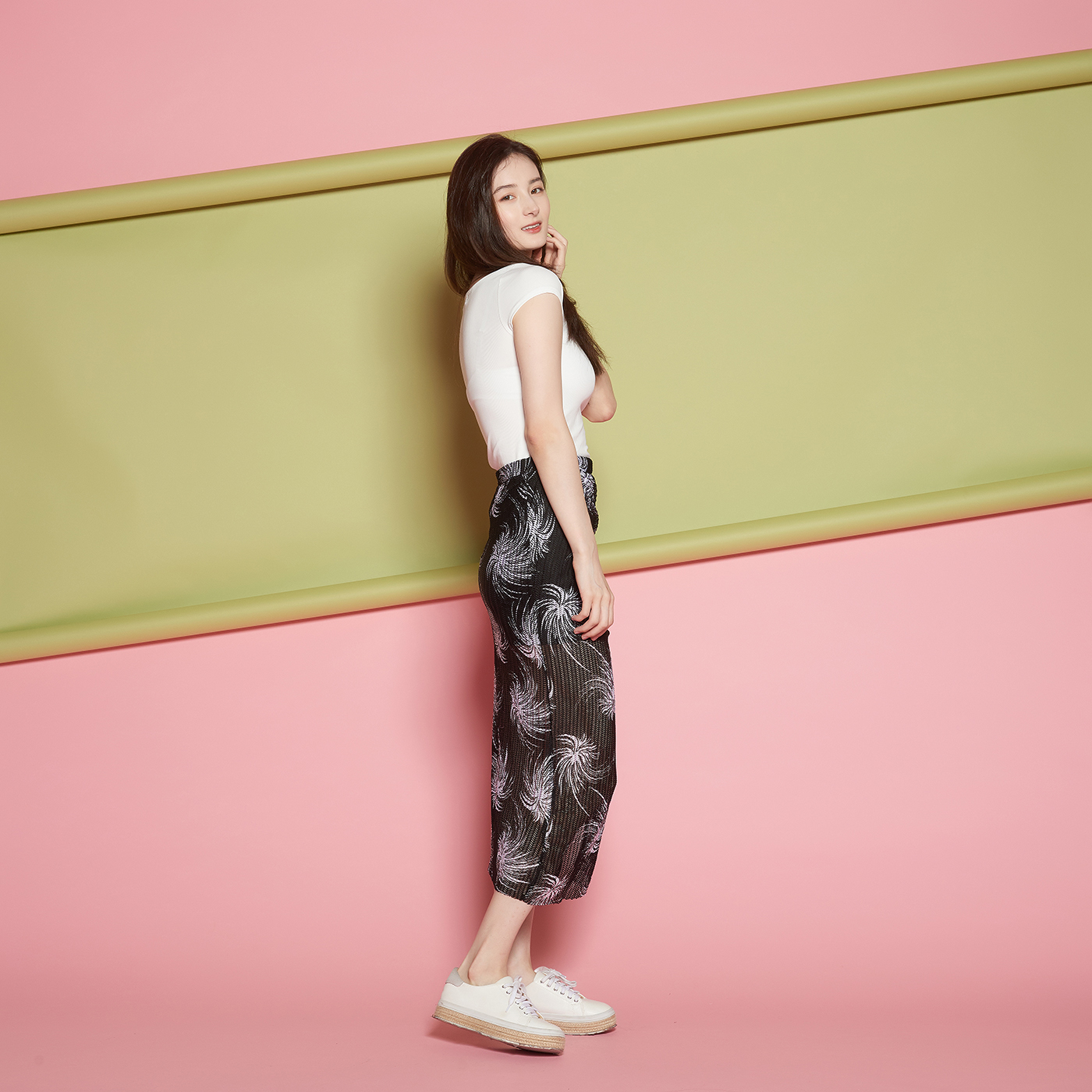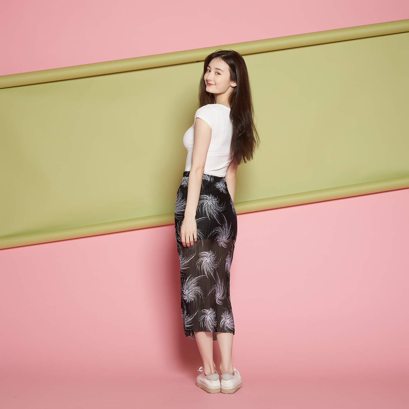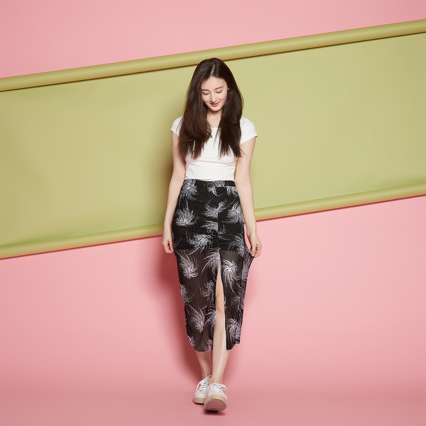 앞부분의 샤링 디자인이 섹시하고 패턴 또한 멋진 스타일의 롱 스커트입니다.