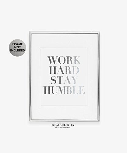 /// Work Hard Stay Humble /// Beautiful classic typography silver foil art print - the perfect silver decor for the office, living room, dining room, office or bedroom. Modern, feminine and elegant.