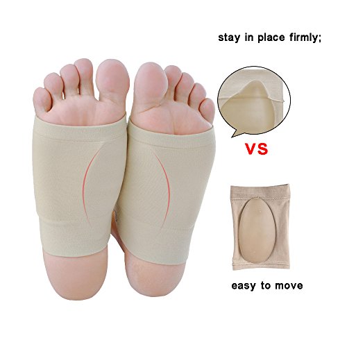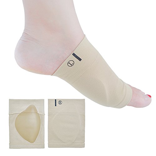 Foot's arch support socks could absorb shock, reduce pressure, smooth sole of foot to make you comfortable while walking or running or other sports, which do well on relieves metatarsalgia pain, it also help care foot and reduce calluses problems; specially designed for foot care. Our gel arch pad cushion is easy to use, just wear it on and put gel cushion right on where you want to protect; compared with other gel foot cushion, ours is fixed on the right place even just wear shoes without socks; Package: 1 pairs arch support socks