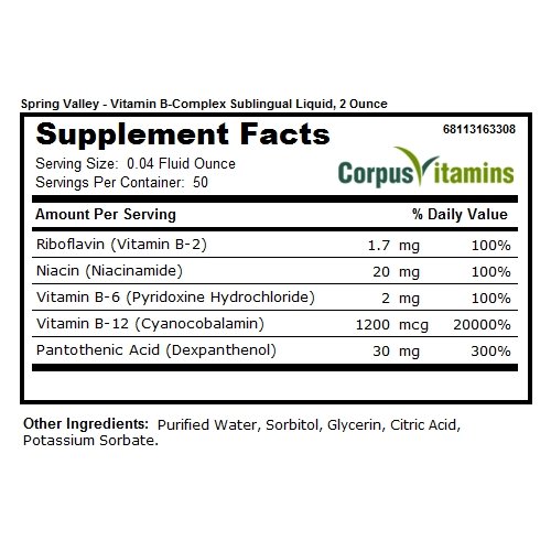 -. Title : SP.R.Ing Valley - Vitamin B-Complex Sublingual Liquid, 2 Ounce With a burst of B-12