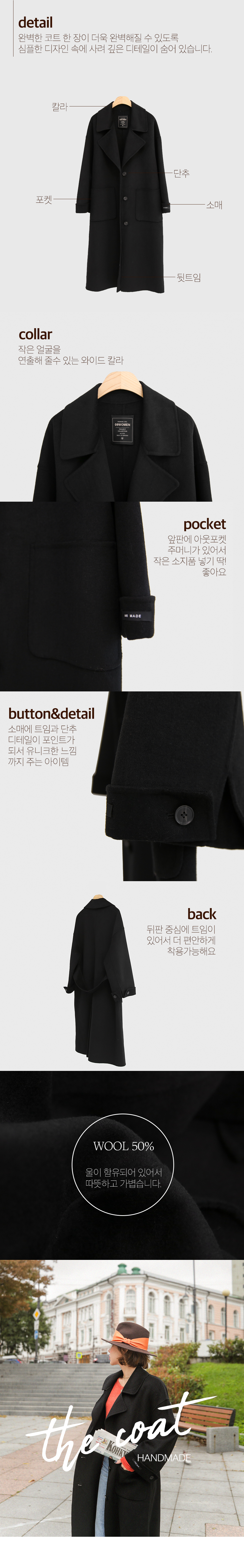 따뜻하고 포근한 핸드메이드 코트를 소개합니당! 울이 함유되어 있어서 따뜻하고 가벼운 아이템! 소매에 트임과 단추 디테일이 포인트가 되서 유니크한 느낌 까지 주는 아이템이에요! :) 단추가 있어서 착/탈의가 가능한 아이템! 앞판에 아웃포켓 주머니가 있어서 작은 소지품 넣기 딱! 좋고! 추운 날 손을 집어 넣기 좋아요! 뒤판 중심에 트임이 있어서 더 편안하게 착용가능해요! 핏은 루즈핏이라 툭 멋스럽게 입기 좋은 아이템! 뒤판에 허리벨트가 합복되어 있어서 더욱 더 세련된 느낌을 주는 아이템으로! 어디든 잘 어울리는 칼라! 블랙 한 가지 칼라로 부담없이 입기 딱 좋아요! 두께감이 두꺼워서 겨울에도 입기 좋은 아이템!:)