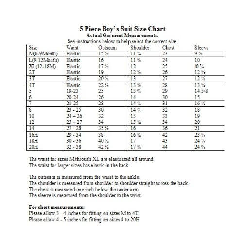 A perfect outfit for church, christening, blessing, baptism, first communion, weddings, or any other special occasions! CHEST IS MEASURED ONE INCH BELOW THE UNDERARM.Please allow 3-5 inches for fitting on chest measurements OUTSEAM IS MEASURED FROM THE WAIST TO THE ANKLE SLEEVE IS MEASURED FROM THE SHOULDER TO THE WRIST SHOULDER IS MEASURED SHOULDER TO SHOULDER STRAIGHT ACROSS THE BACK