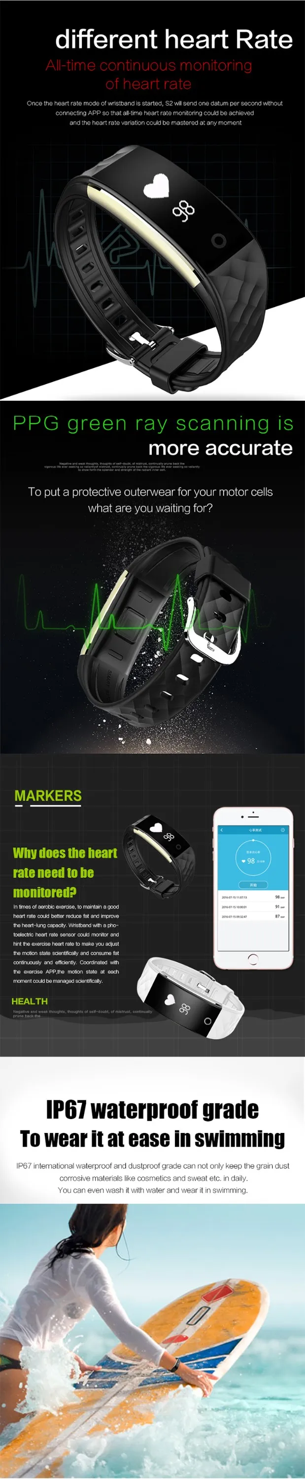 3).OLED; reminder for incoming calls & msg; caller ID display; Music player; Pedometer; Heart rate pulse; Waterproof IP67