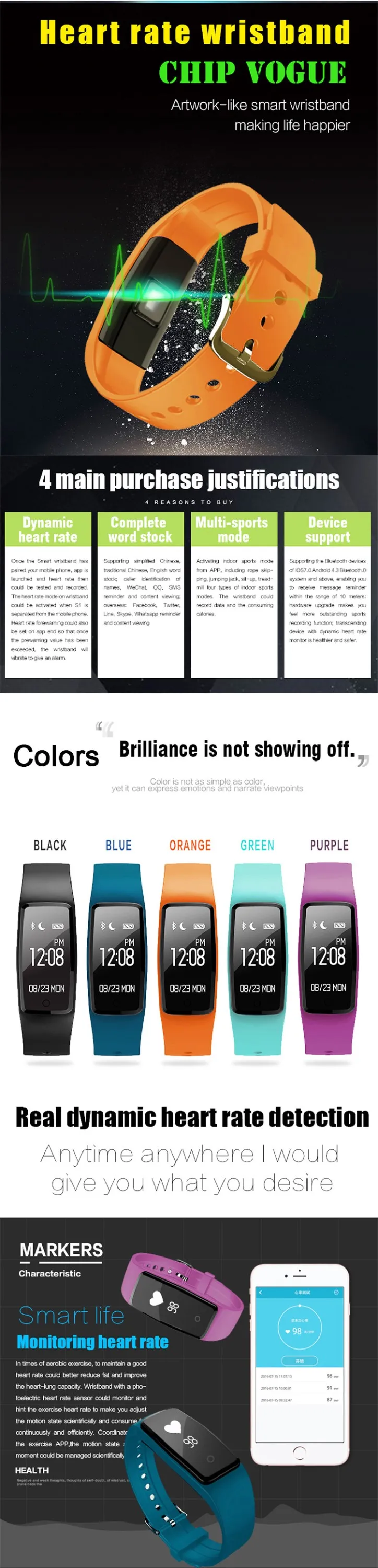 4).The product is suitable for: Android 4.3 & IOS 7.0 or upper version