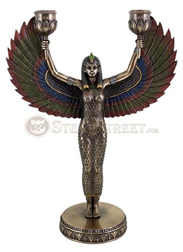 Egyptian Goddess of Motherhood and Magic Isis with Wings Unfurled Double Taper Candle Holder Candelabra