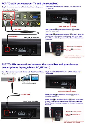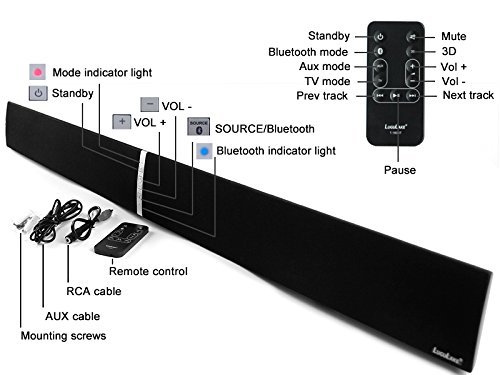 LuguLake T180 TV Sound Bar Bluetooth Speaker 3D Surround For Home Theater System, 2.0 Channel