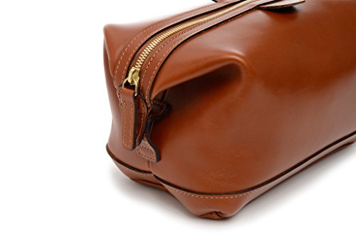 Product Description Full grain American aniline leatherSolid brass hardwareSnap down ends allow for expansionCustomizable monogram patch on exteriorHandcrafted with care in our own factoryMade in the USADimensions: 11" x 5" x 6" 0