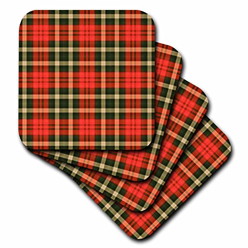 3dRose cst_55216_1 Larger Country Red N Green Plaid-Soft Coasters, Set of 4