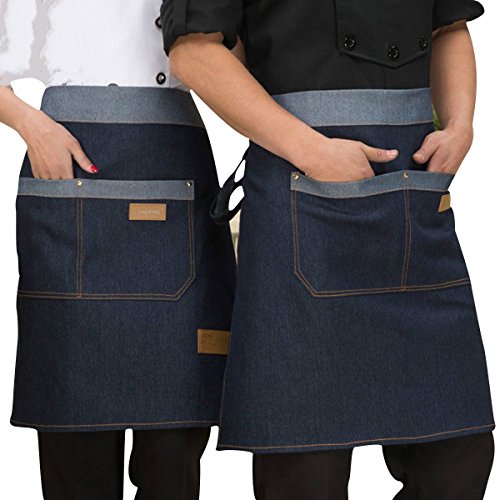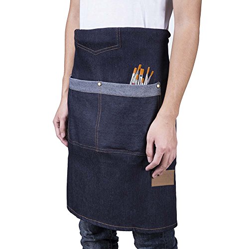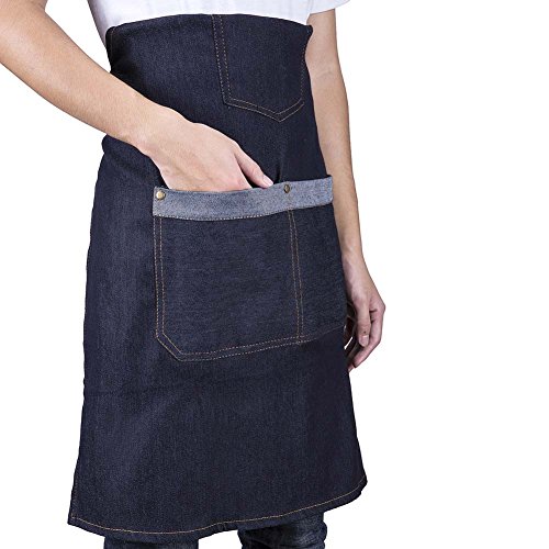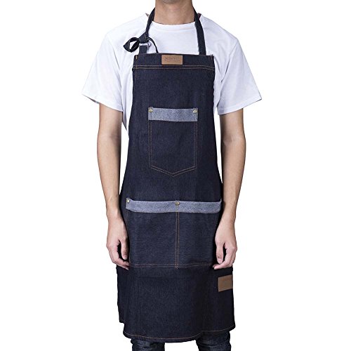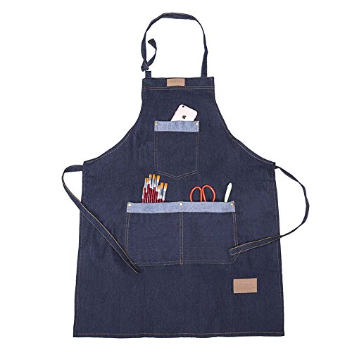 - 100% cotton denim fabric - soft and comfortable; double belt design - easier to bind high-capacity pocket - free to place kitchen gadget