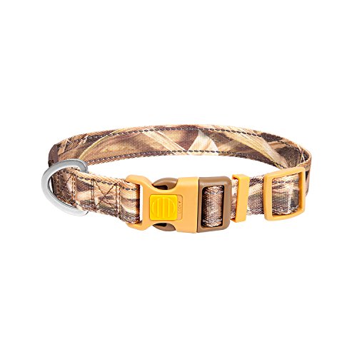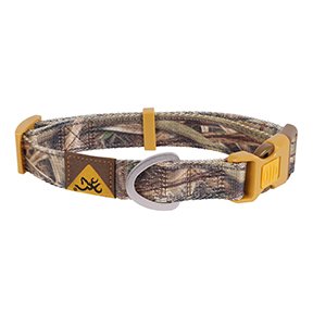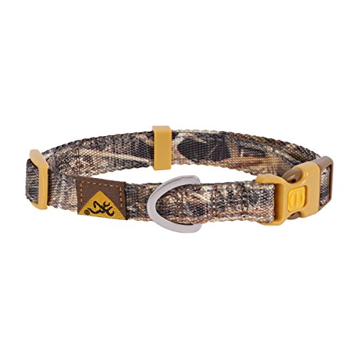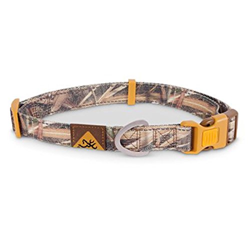 Studio : SPG Outdoors Publisher : SPG Outdoors Binding : Misc. Product Description Durable, simple and secure with a dose of pink camouflage style, the Browning Classic Adjustable Camouflage Nylon Webbing Dog Collar is the perfect way to give your lady canine a touch of Browning's hunting heritage. Made with tough nylon webbing that's sewn with reflective stitching for low-light visibility, this collar also features Mossy Oak Blades camo and a locking buckle for added security. The adjustable design fits a range of neck sizes, and the sewn-in metal D-ring offers a secure attachment point for a leash. 0