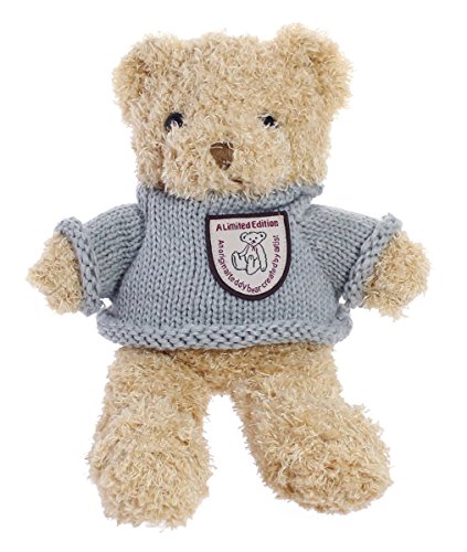 -. Feature : Height: 11.8" (30cm) / Meterial: polypropylene cotton / Teddy is plush looking and wears a classy gray sweater with a badge. / Perfect as a gift for someone special for Christmas, anniversaries, birthdays, and special events.