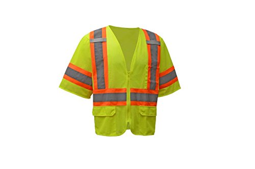 CJ Safety CJHVSV3001Z ANSI Class 3 High Visibility Two Tone Safety Vest Zipper Closure 100% Polyester Mesh (3XL, Green)