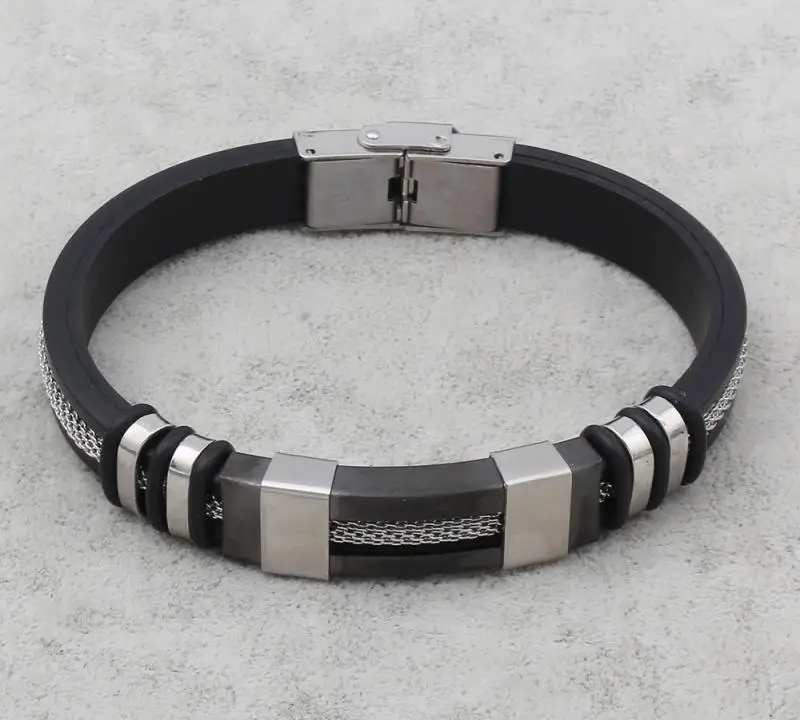 2017 Stainless Steel Silicone Black Bracelet Men WristBand Punk Style New Design Men Bracelet Simple Rubber charm pulsera Hombre