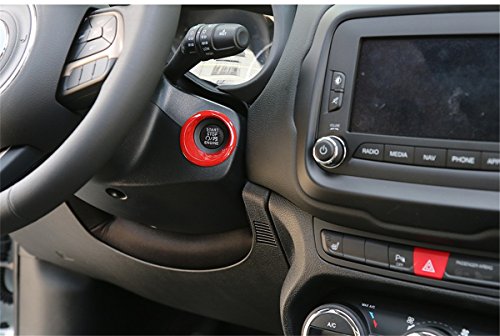 Dwindish Red ABS Car Engine Start Stop Sticker Ignition Key Ring Switch Cover for Jeep Renegade 2015 Up Compass 2017