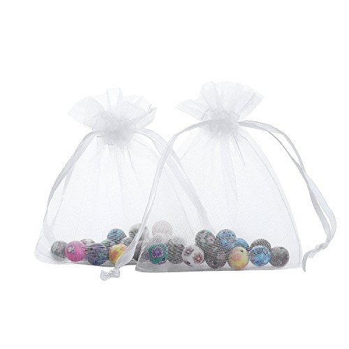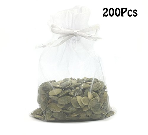 Ovee Lando 200PCS (3.5X4.5") Drawstring Organza Jewelry Favor Pouches Wedding Party Festival Gift Bags Candy Bags –White