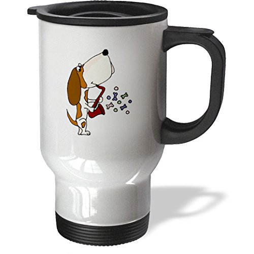 3dRose tm_195273_1 Funny Basset Hound Dog Playing Saxophone Travel Mug, 14-Ounce, Stainless Steel