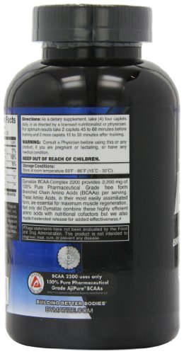 Dietary Supplement. Br Dymatize BCAA Complex 2200 provides 2,200 mg of pure free form Branched Chain Amino Acids (BCAA's) per serving. These Amino Acids, in their most easily assimilated form, are essential for maximum muscle regeneration. Not only did Dymatize combine these highly efficient amino acids with nutritional cofactors but we also made it time-release for added effectiveness. No sugar, salt, yeast, artificial colors or artificial flavors have been added to this product, because of this, appearance may vary.Feature